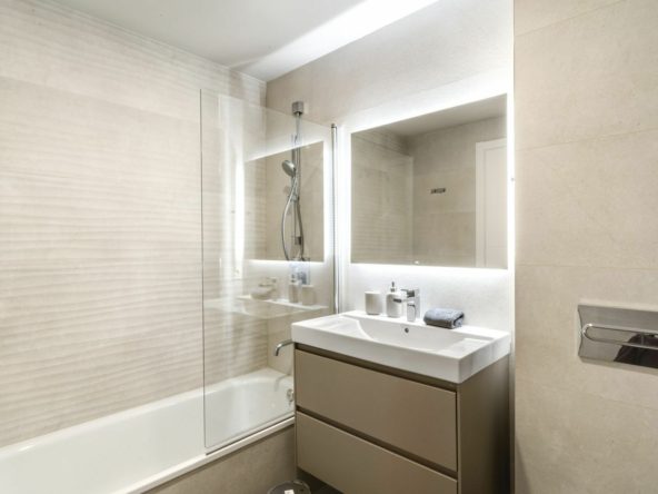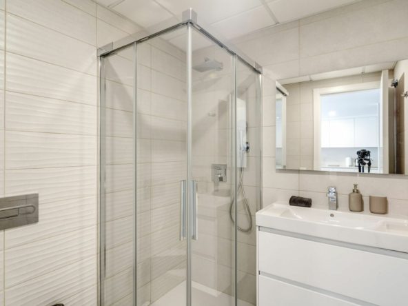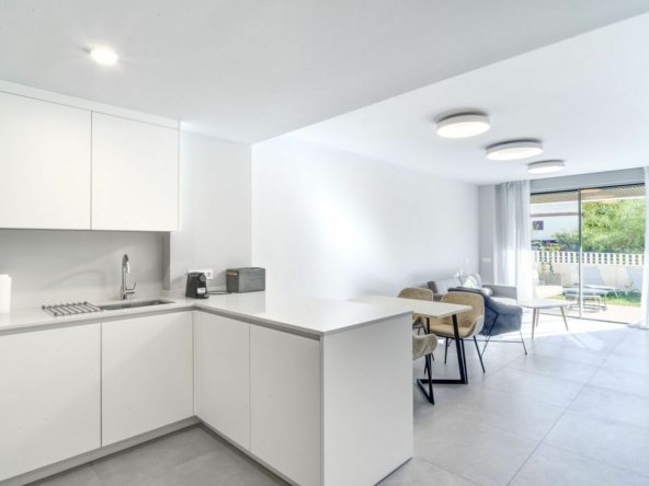 Spectacular two bedroom ground floor apartment in the brand new gated community Estrella Del Mar, Marbella. This beachside community is only 200m from the beach and in a privileged location close to services, leisure facilities, shops and restaurants. The community offers communal swimming pools, a gym and co working area. The property has an open plan living and dining area with access to a private terrace and garden; fully fitted open plan kitchen with laundry area; master suite with access to the terrace; guest bedroom; and a guest bathroom. Other features include a private parking space, storeroom, hot and cold air conditioning, electric blinds and full domotic system.