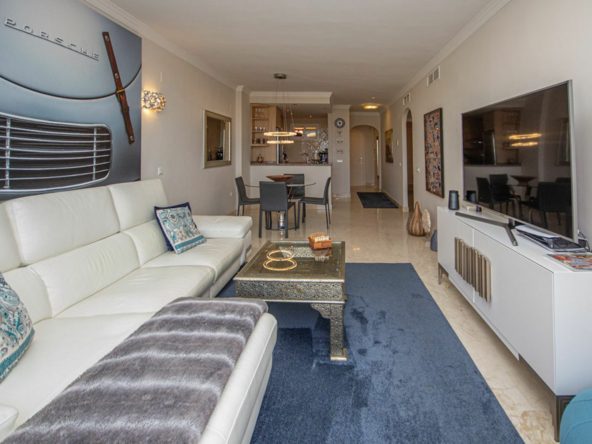 The property features 2 spacious bedrooms and 2 bathrooms, including a master bedroom with an elegant en-suite bathroom that has been recently renovated and now boasts a large walk-in shower. With a total built area of 88 m² plus a generous 26 m² terrace, the apartment enjoys beautiful sea views and an ideal orientation.