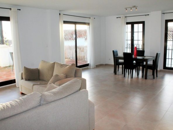 Beautiful 2 Bedroom Duplex Apartment in Pueblo Los Monteros – South Facing with Panoramic Sea & Mountain Views This fantastic two bedroom, two bathroom first floor duplex apartment, built in 2009, is located within the sought-after gated community of Pueblo Los Monteros. Offered fully furnished, the property enjoys generous interior space, excellent natural light and impressive outdoor areas. The main level features a spacious lounge and dining area with four windows, allowing an abundance of natural light throughout. Patio doors lead to a large south-facing terrace, partially shaded by a mature olive tree, creating the perfect setting for outdoor dining or relaxing in privacy. The fully fitted kitchen is equipped with all electrical appliances, including cooker, washing machine, dishwasher and fridge freezer. On the upper level, both bedrooms are generously proportioned. The master bedroom features a king-size bed and access to a private terrace boasting panoramic sea and mountain views. The second bedroom offers twin beds and ample storage. Both bedrooms, along with the lounge, benefit from air conditioning. The property is set within a secure gated complex with beautifully maintained communal areas, a large communal swimming pool and underground parking. The build size is 137 m² with an additional 65 m² of terraces. This is an excellent opportunity as a permanent residence, holiday home or investment property in one of Marbella’s most desirable residential areas.