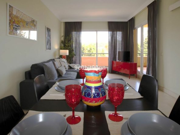 Private Terrace: Step outside onto your private terrace and enjoy panoramic views of the well-maintained gardens and the beautiful Santa Maria Golf course.