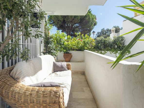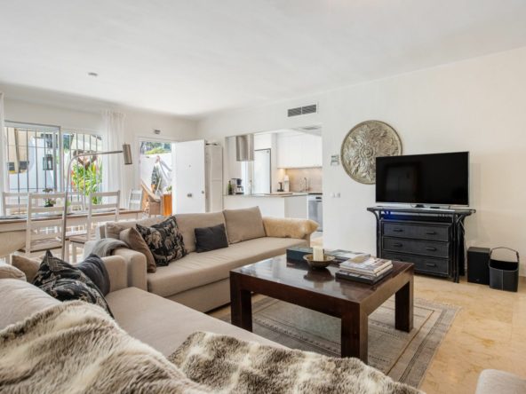 Beautiful two bedroom ground floor apartment, located in the sought-after Birdie Club community in Río Real, Marbella, this renovated property offers a peaceful and secure setting just a short walk from the beach, close to the golf club, and next to the future Four Seasons resort. Fully refurbished in 2021, the apartment features bright and spacious interiors and its own private entrance. This home includes two bedrooms with built-in wardrobes and access to a glazed east-facing terrace, one bathroom, and a comfortable living area with an open-plan kitchen that leads directly to the main west-facing terrace, perfect for enjoying the afternoon sun and the quiet surroundings. The community offers well-maintained gardens, a large communal saltwater swimming pool, and a separate children’s pool, creating a relaxed, resort-style atmosphere all year round. The property is sold fully furnished and includes a private parking space, with additional street parking available.