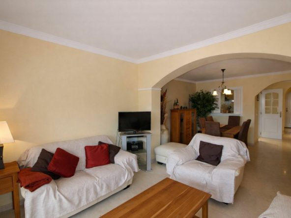 The property offers an open living space, with access to a generous sunny terrace. You can enjoy relaxing views over the communal pool and lush green surroundings, the ideal setting for morning coffee or evening entertaining.