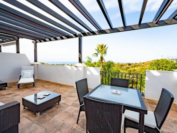 Discover this exquisite duplex penthouse nestled in a charming, white-washed Andalusian village-style urbanisation, found in the heart of Altos de Los Monteros, Marbella.