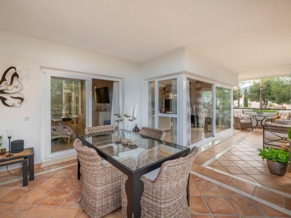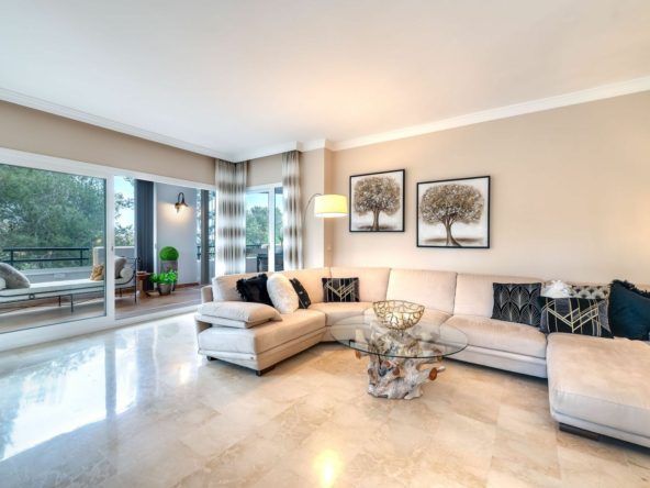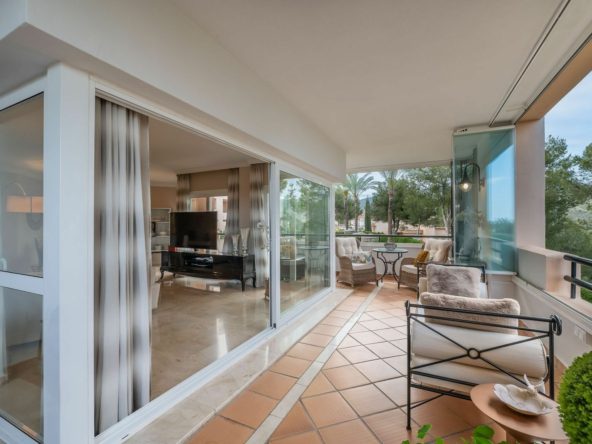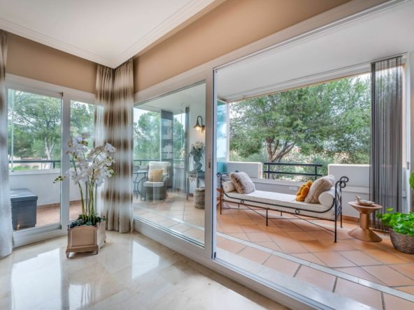 Imagine waking up to the gentle sounds of birdsong and the lush green views of the Santa Maria Golf Course, just a short walk from the sparkling Mediterranean Sea. This dream can become a reality with this exceptional apartment located in the prestigious Las Terrazas de Santa Maria Golf development in Elviria, Marbella East.