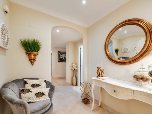 This immaculately presented apartment with a feel of a show home, boasting a desirable location directly on the golf course and a mere 2 km from the beach. Residents enjoy access to a range of amenities, including several communal pools perfect for cooling off in the Andalusian sun, meticulously manicured gardens providing a tranquil retreat, and the convenience of underground parking, storage room of 6m2 and a lift.