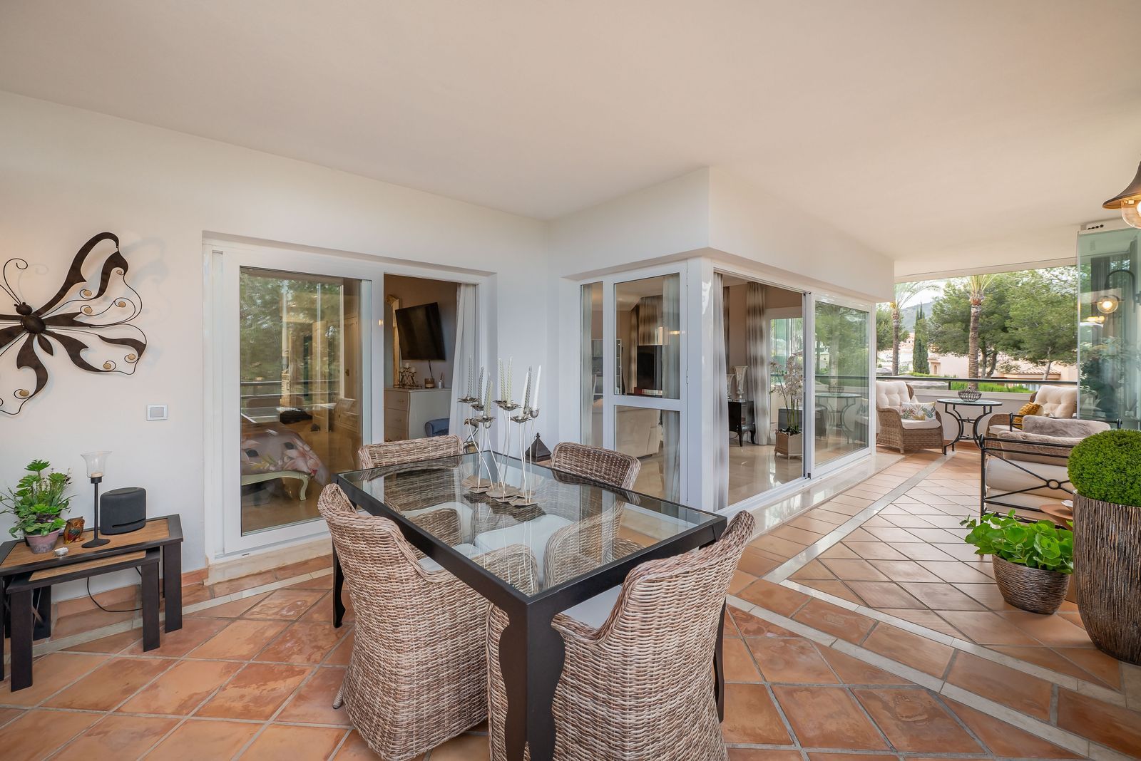 Inside, the apartment offers a sense of spaciousness and sophistication. With three generously sized bedrooms and three well-appointed bathrooms, there's ample room for families or those who enjoy entertaining. The heart of the home is the expansive living and dining room, with an east-facing terrace. Enjoy breakfast with the sunrise and partial sea views from this delightful outdoor space, which features elegant glass curtains, allowing for year-round enjoyment regardless of the weather.