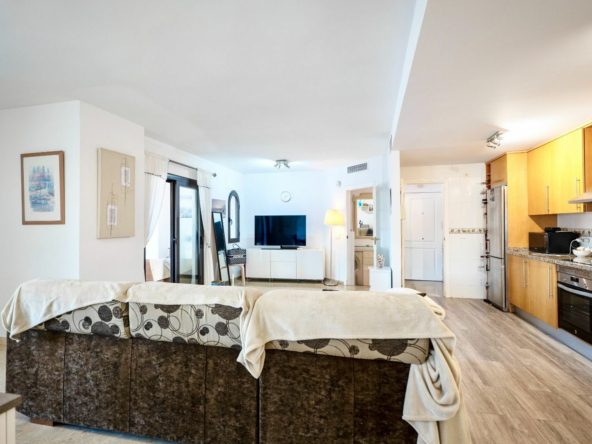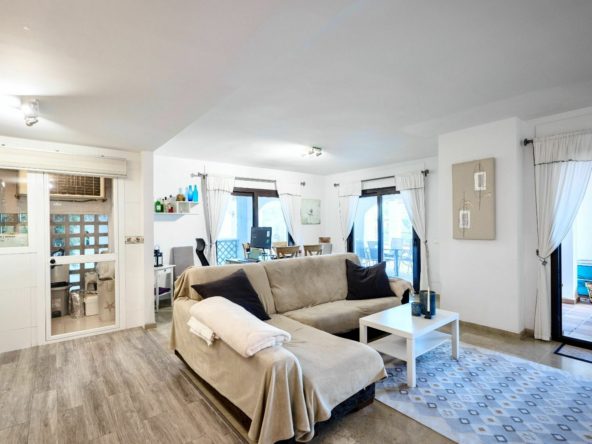 You enter a bright spacious living room with an open plan kitchen with direct access to the big terrace. The terrace is partially covered and also with large open space for enjoying the sun.