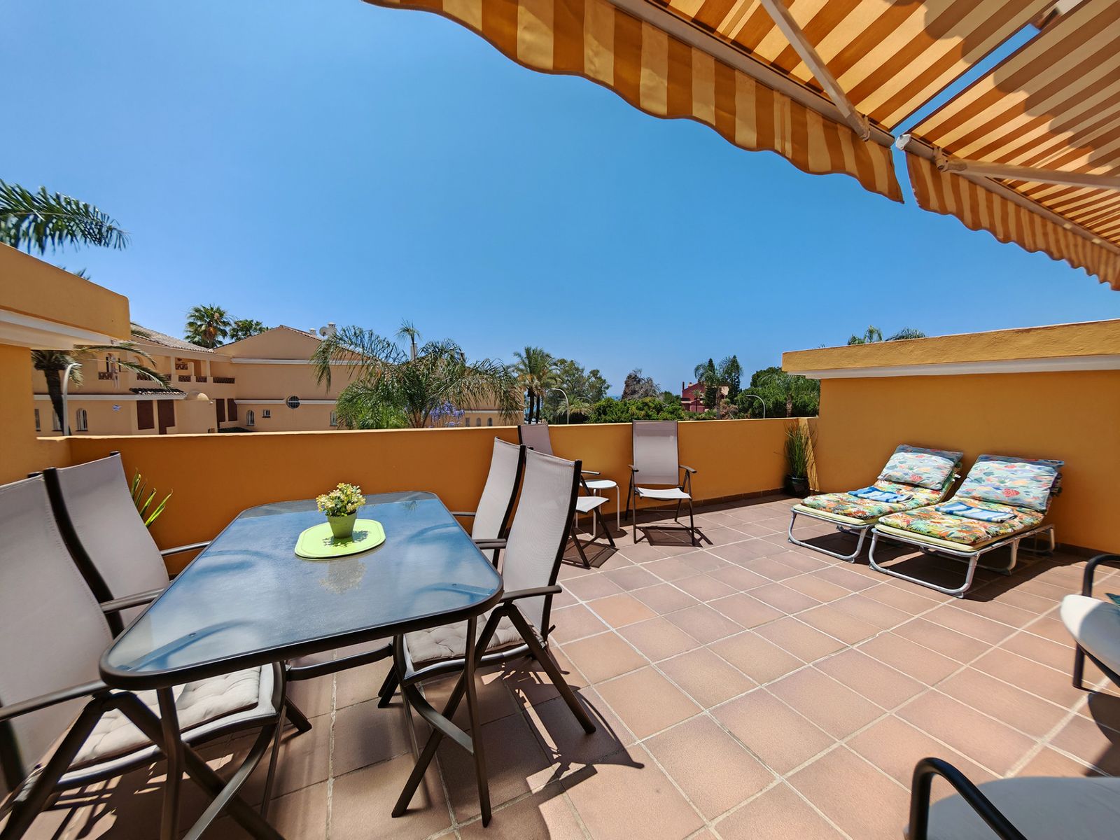 Apartment for sale in Elviria, Marbella with 3 bedrooms, 2 bathrooms and 1 on suite bathroom, with communal swimming pool, private garage and communal garden. Regarding property dimensions, it has 128 m² built, 108 m² interior and 20 m² terrace. Has the following facilities amenities near, transport near, air conditioning, fully fitted kitchen, marble floors, storage room, private terrace, kitchen equipped, sea view, internet – wi-fi, gated community, pool view, beach side, close to children playground, close to sea / beach, uncovered terrace, good condition, ceiling cooling system, ceiling heating system, close to shops, close to town, close to schools and surveillance cameras.