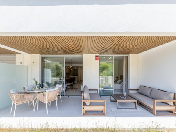 Set within the prestigious Estrella del Mar development, located in the peaceful and green surroundings of Elviria, this elegant ground-floor apartment has been thoughtfully designed to offer comfort, privacy, and a harmonious connection with its natural setting.