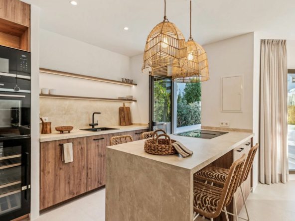 The property perfectly combines design, comfort and functionality, with open spaces, contemporary materials and carefully selected décor. From the living room, you have direct access to a lovely outdoor area, ideal for al fresco dining, relaxing or enjoying time with family, all surrounded by well-kept communal gardens.