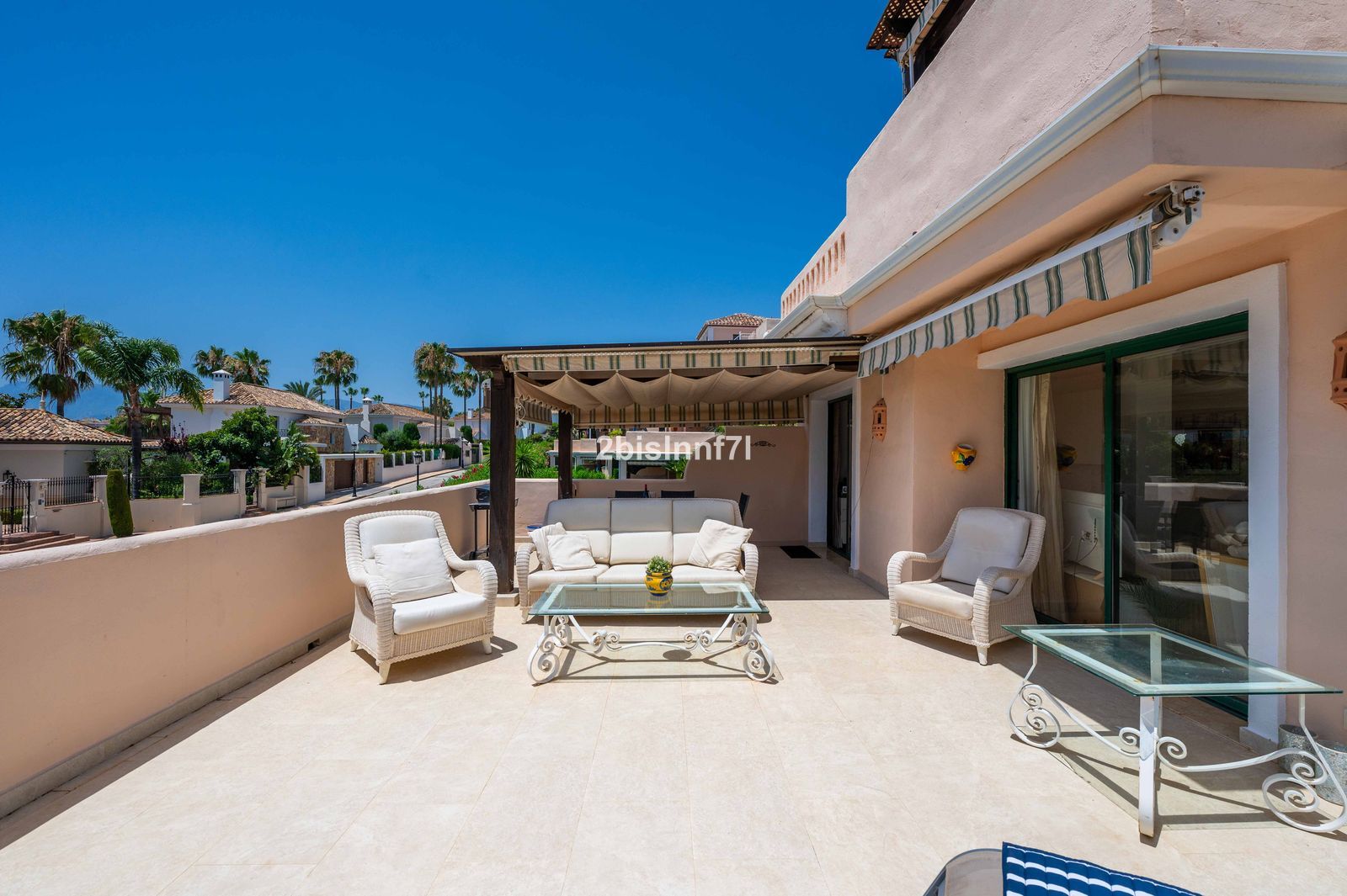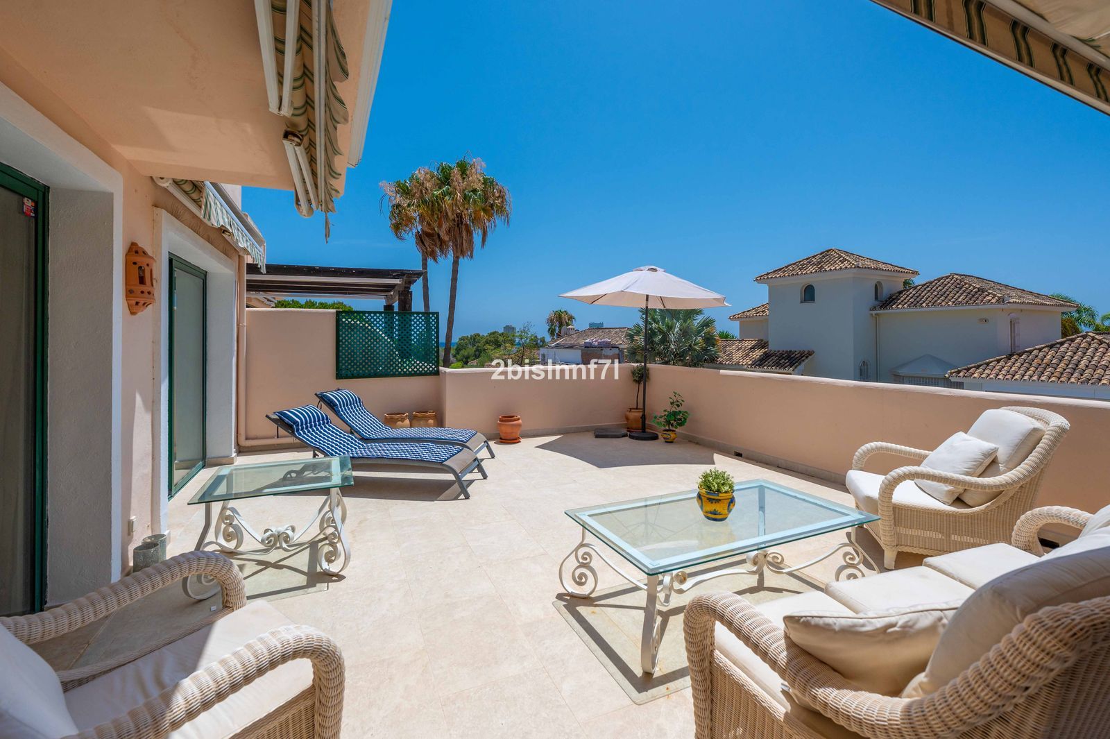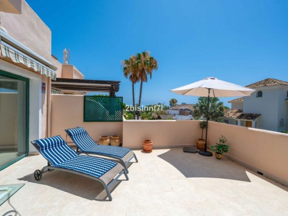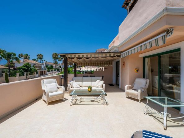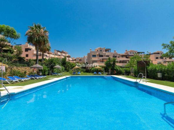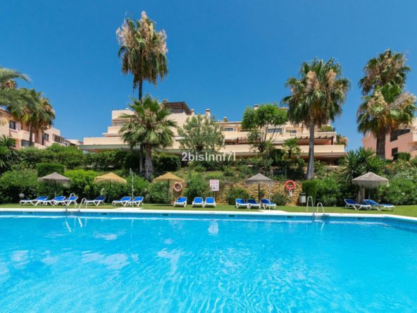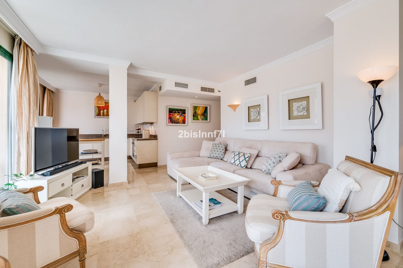The apartment consists of two generously sized bedrooms and a third smaller one, ideal as a guest room, home office, or children's bedroom. Bedrooms benefits from lovely views of the landscape gardens. The two bathrooms have been renovated and feature underfloor heating for maximum comfort. The kitchen has also been completely renovated with high-end appliances and a modern design. One of the highlights of this property is its spectacular large terrace, with multiple areas to enjoy outdoor living. It features a covered dining space ideal for alfresco meals, a charming chill-out area and a sunbathing zone with longers, all offering beautiful views. Thanks to its excellent orientation, the apartment enjoys sunlight all day long, from 10 AM until sunset. From the terrace you can also enjoy a beautiful sea view on the horizon.