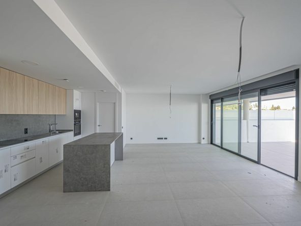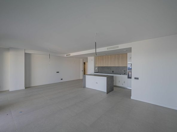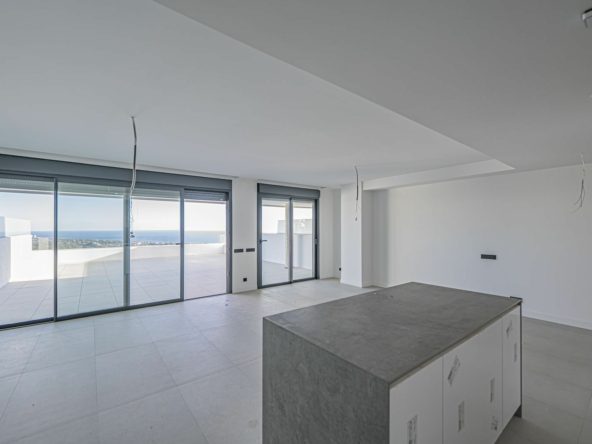 The apartment is located on the second floor and offers a total of 3 bedrooms, two bathrooms, a living room with an open-plan kitchen, and spacious terraces totaling 100m² with breathtaking sea views.