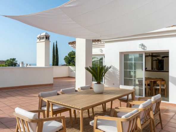 This stunning duplex penthouse is located in the exclusive Rio Real residential area in Marbella East, offering a perfect blend of luxury and comfort. With a spacious living area of 138m² and an impressive 175m² of terraces, including a 100m² main terrace with breathtaking sea views, this property provides ample space for relaxation and entertaining. The penthouse features three generously sized bedrooms, two bathrooms, and a large living room with a cozy fireplace. The open-plan kitchen and dining area offer a welcoming atmosphere, while the three terraces provide plenty of outdoor space to enjoy the Mediterranean climate.