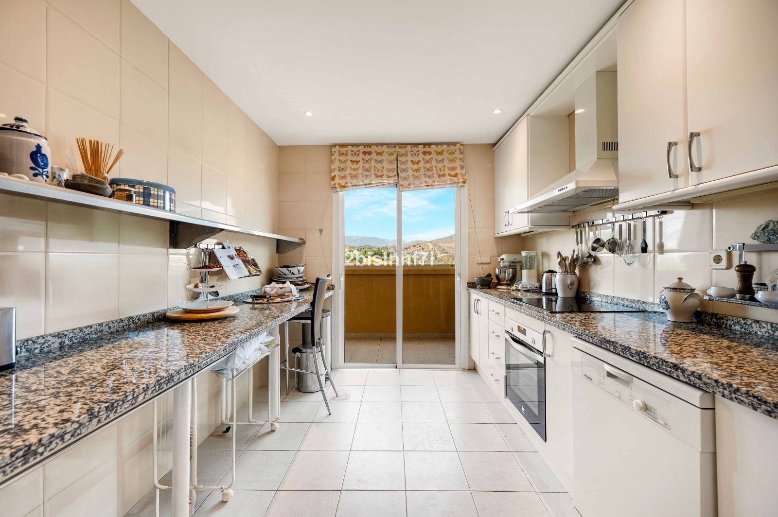 The kitchen with an elongated size, is fully fitted well equipped, plus it benefits of a rear terrace with load of space