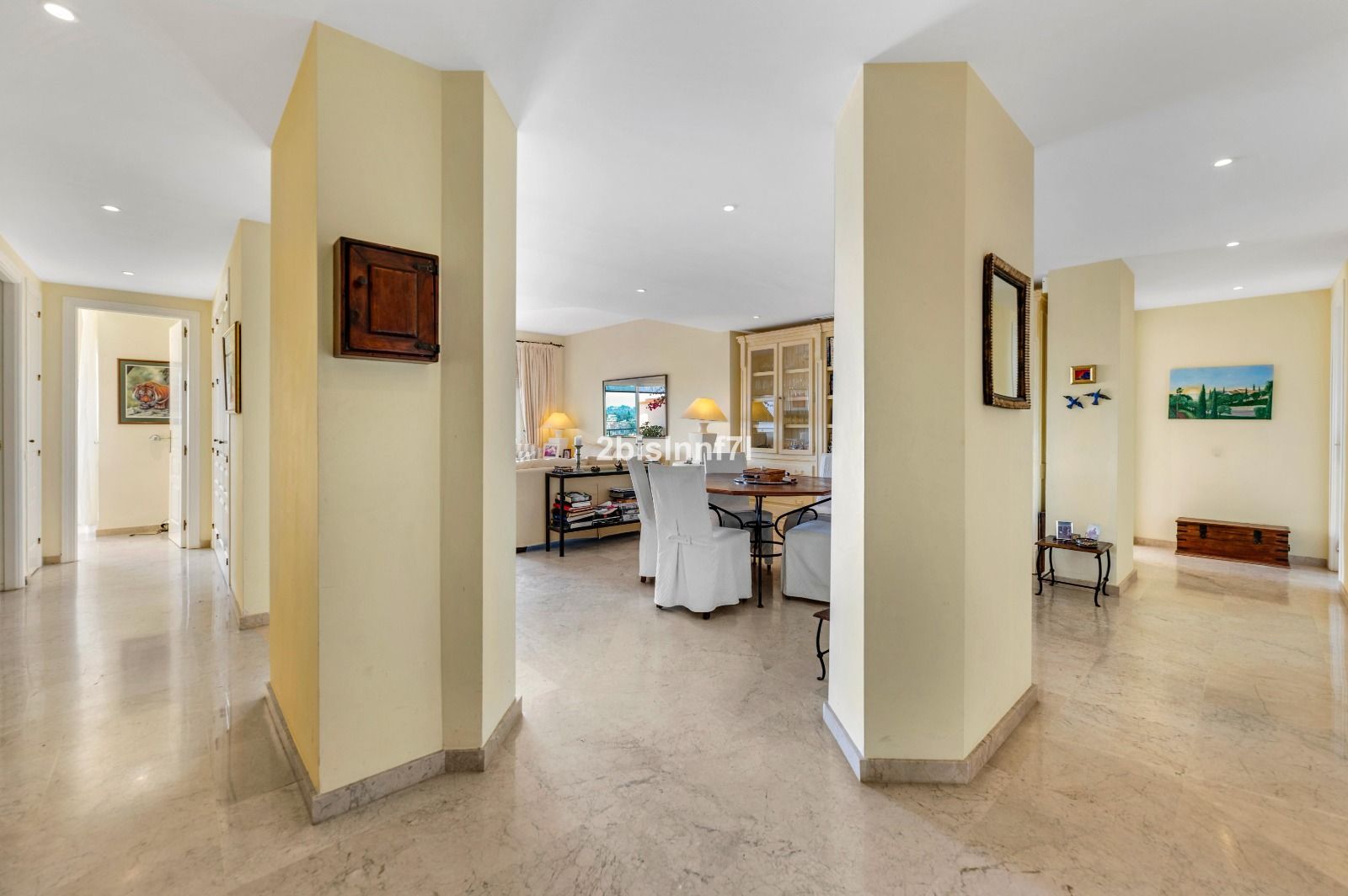 This spacious apartment offers an ideal set up for family living and entertaining, it comprises 3 bedrooms and 3 bathrooms, the bedrooms benefit of built-in wardrobes, and the large bathrooms are fully clad in elegant marble, two with bathtub and the other two with walk in shower.