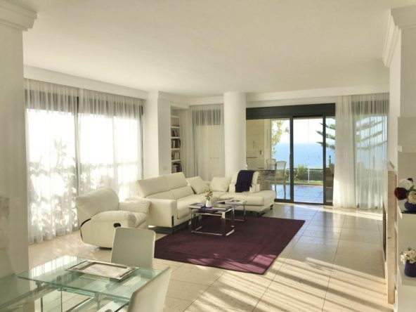 Nested in a natural and peaceful environment, surrounded by oak and pine trees, in an prestigious contemporary complex with 24 concierge and security service, this large 2 bedroom corner apartment offers some of the best views of the Mediterranean in Marbella.