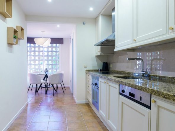 Spanning a total built area of 137m², with 112m² of stylish interior living space and a generous 25m² private terrace, the apartment provides an ideal blend of comfort and sophistication. The property comprises two spacious bedrooms, including a master suite with an en-suite bathroom, an additional bathroom, and a separate guest toilet. All rooms are equipped with air conditioning, ensuring a pleasant atmosphere year-round. The apartment further benefits from modern aerothermic heating, high-speed fibre optic internet, and Wi-Fi connectivity throughout.