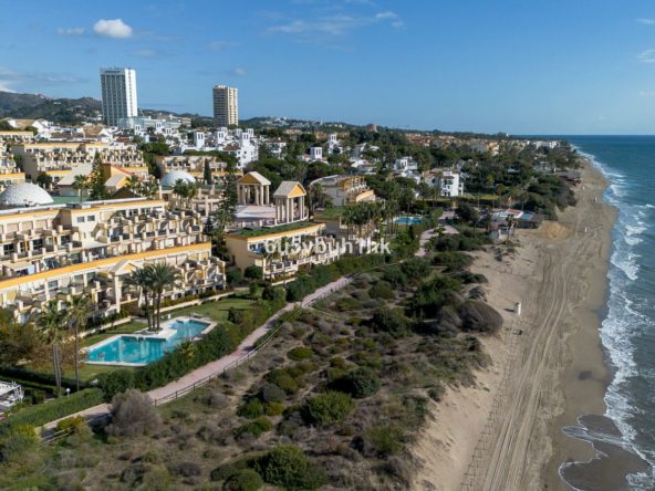 Discover one of Elviria’s most attractive frontline-beach investment opportunities: a bright, south-facing studio that combines unbeatable location, newly refreshed features, and exceptional rental performance. Set within a secure gated community with a swimming pool and private parking, this property sits just steps from Elviria’s golden dunes, the scenic sandy beach walk, and world-famous beach clubs like the always-vibrant Nikki Beach.