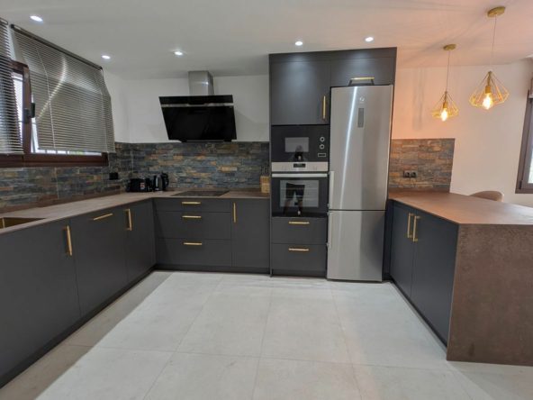 * Sleek, fully fitted open-plan kitchen with contemporary finishes.