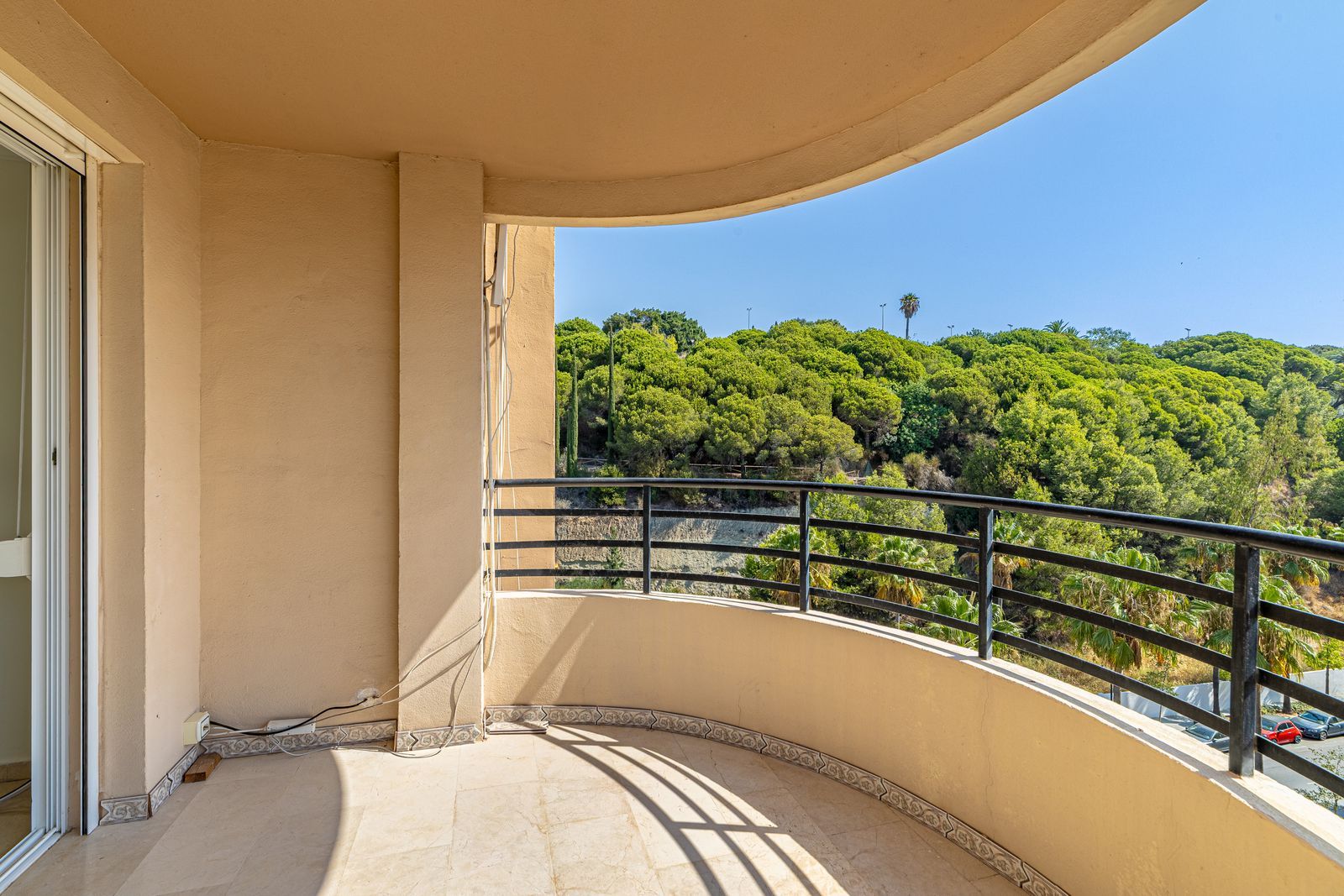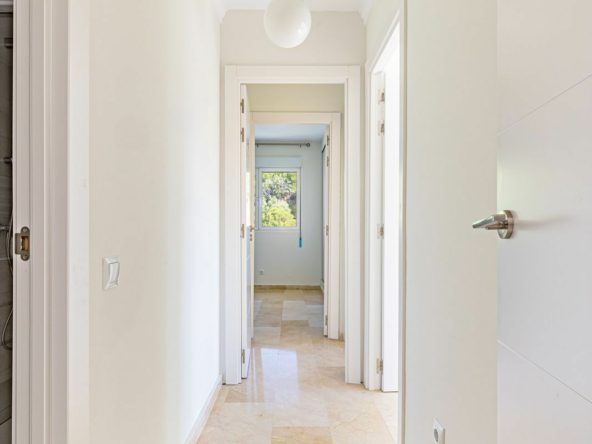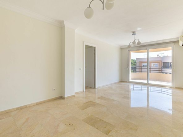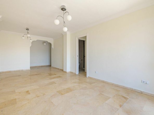Impeccable top floor apartment in the heart of Marbella, just a 5-minute walk from the beach and the promenade, and next to supermarkets and shops. The property was renovated very recently, and features: a living/dining room with access to the terrace offering beautiful sea views, a master bedroom with en-suite bathroom, two further bedrooms each with their own bathroom, a fully equipped kitchen, and a laundry room. The complex has a swimming pool and garden, and a secure communal car park.