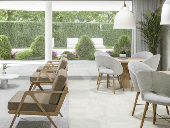 The main feature of the common areas is the 90 m² swimming pool with saline chlorination and night lighting, surrounded by a large solarium with grass where you can enjoy the many sunny days, accompanied by a chill-out area overlooking the pool.