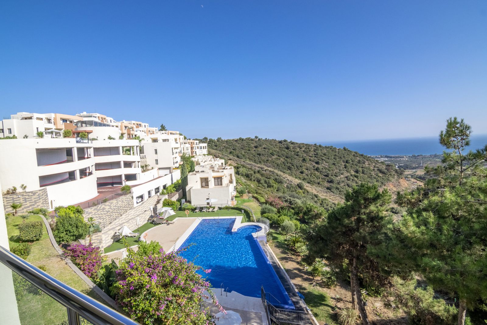 Stylish and modern, this two bedroom apartment in the exclusive Samara Resort in Marbella offers stunning panoramic views of the Mediterranean Sea. Located on the first floor with easy access through the resort’s beautifully landscaped gardens, the apartment features a bright and open layout that seamlessly connects the fully equipped kitchen, dining area, and living room, perfect for relaxed coastal living. Both bedrooms open onto a spacious terrace overlooking the pool and sea, while the master suite includes an elegant en-suite bathroom, dressing area, and ample built-in wardrobes. A second bathroom with a sleek, minimalist design, along with a laundry room and storage space, add everyday convenience. Set within a luxury gated community with 24-hour security, residents can enjoy outstanding amenities including a spa, sauna, jacuzzi, massage room, indoor heated pool, gym, and two outdoor pools, one an impressive infinity pool with breathtaking sea views.