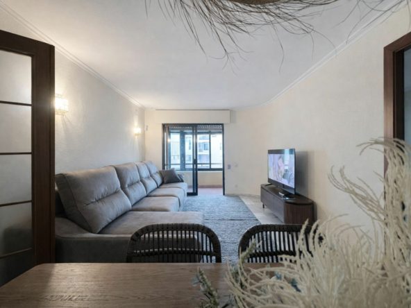 The apartment offers 110 built sqm, very well distributed, comprising two spacious bedrooms, one generous bathroom, a large living room, and a separate kitchen, renovated and in good condition, with an additional practical space ideal for laundry or storage.