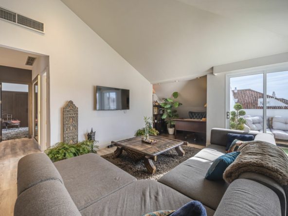 This charming penthouse apartment is located in Las Lomas del Marbella Club, within a prestigious gated community featuring beautifully maintained gardens, three swimming pools — one heated in spring — and 24-hour concierge and security service.