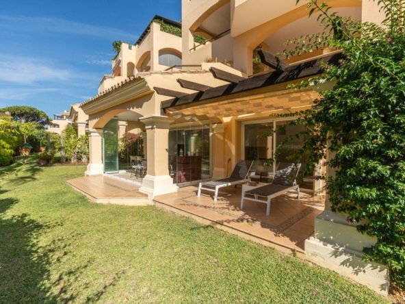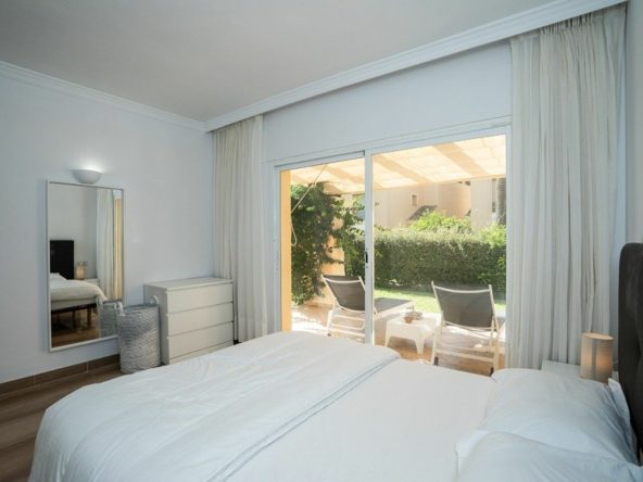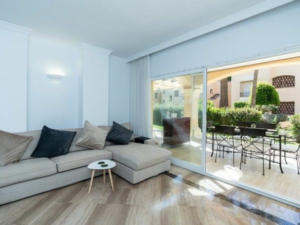 This beautifully refurbished apartment is nestled in one of Elviria's most sought-after complexes in East Marbella, offering the perfect blend of luxury and convenience. Just a short stroll from the beach and vibrant local amenities, this original two bedroom property has been converted to offer three spacious bedrooms and two modern bathrooms. The master bedroom features an elegant en-suite bathroom, while a second bathroom serves the remaining rooms. The heart of the apartment is its brand-new open-plan kitchen, seamlessly flowing into a bright living area. From here, step out onto the expansive covered terrace that leads to your own private garden – ideal for al fresco dining or relaxing in serene surroundings.