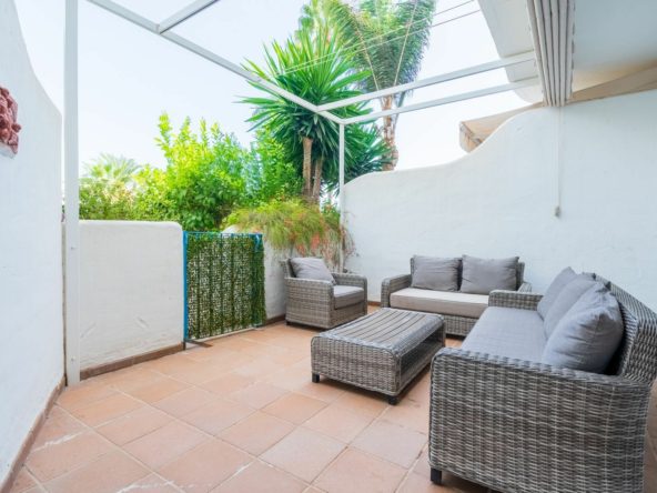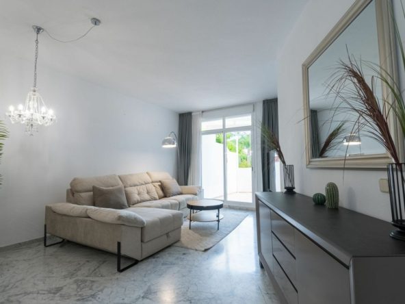 Beautiful garden apartment situated in a highly desirable gated community on Marbella's Golden Mile, within walking distance of the beach, all general amenities, and restaurants. The central area of Marbella and Puerto Banús are just a short drive away.