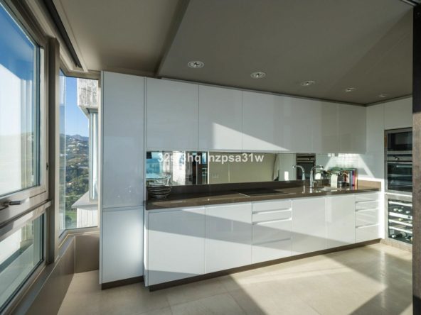 This exceptional apartment embodies contemporary refinement and Mediterranean elegance. The generous volumes unfold around a spectacular living room bathed in natural light, thanks to large bay windows that open onto 360° panoramic views: the sea, the surrounding golf greens and the majesty of the Andalusian mountains.