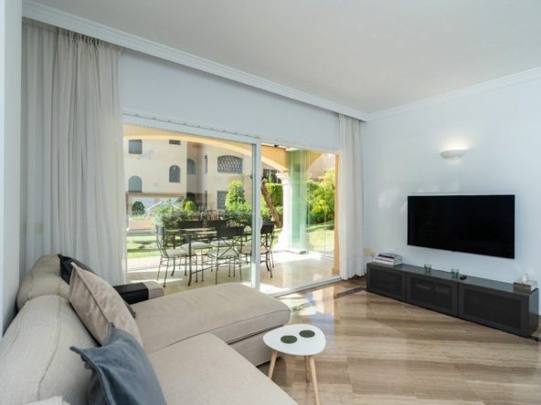 This beautifully refurbished apartment is nestled in one of Elviria's most sought-after complexes in East Marbella, offering the perfect blend of luxury and convenience. Just a short stroll from the beach and vibrant local amenities, this original two bedroom property has been converted to offer three spacious bedrooms and two modern bathrooms. The master bedroom features an elegant en-suite bathroom, while a second bathroom serves the remaining rooms. The heart of the apartment is its brand-new open-plan kitchen, seamlessly flowing into a bright living area. From here, step out onto the expansive covered terrace that leads to your own private garden – ideal for al fresco dining or relaxing in serene surroundings.