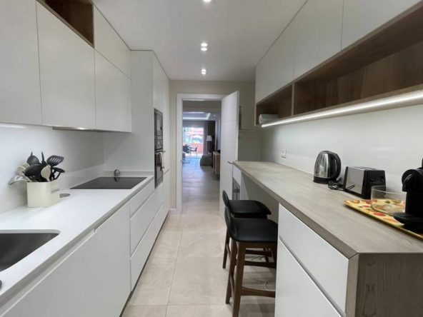 The fully-equipped kitchen is a chef's dream, offering ample space and modern appliances, perfect for leisurely breakfasts or cooking up a storm. The layout of the apartment is carefully designed to maximise comfort and functionality.