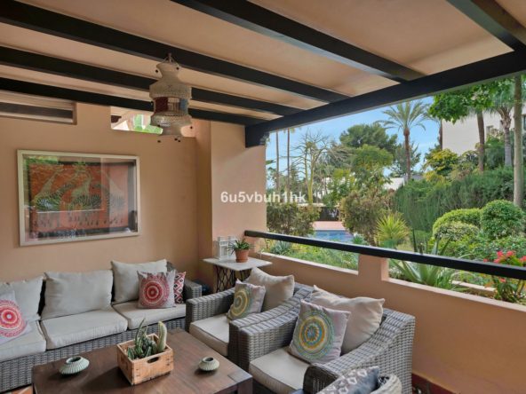 This elegant ground-floor apartment is located in a prestigious gated community in Nagüeles, just 6 minutes walking from The British International School of Marbella and 5 minutes from the beach.