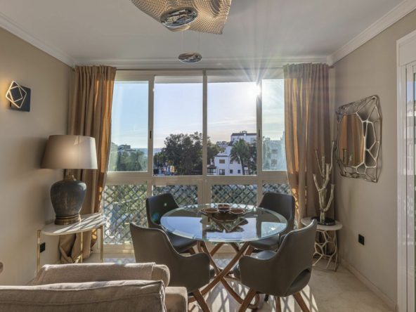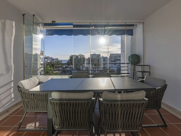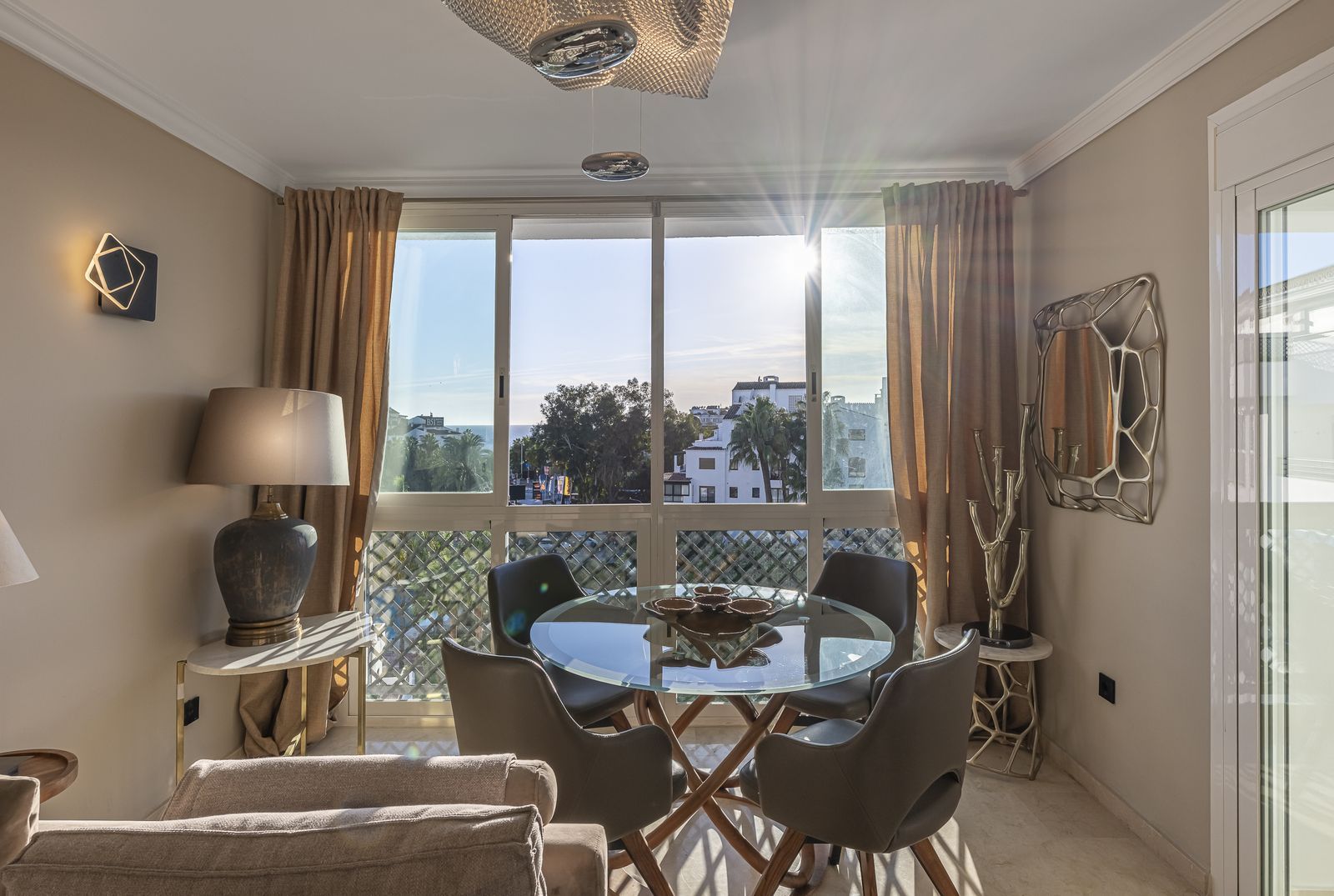 Welcome to Marbella.Imagine waking up every morning with the gentle Mediterranean breeze caressing your face and the promise of a new day in one of the most exclusive enclaves in the world.This luxurious duplex, located in the vibrant heart of Puerto Banús, is not just a property: it is a haven of elegance, serenity and style.From the moment you step inside, you will be dazzled by the exquisite décor, where every detail has been carefully chosen to create a unique visual and sensory experience.The spacious and bright rooms open naturally to the outside, allowing the southern light to flood every corner.On the main floor, the fully equipped separate kitchen is an ideal space for both enjoying fine dining and sharing special moments.Adjacent to it, the living room offers an atmosphere of absolute comfort, perfect for relaxing after a day enjoying the charms of Marbella.On this same level, two bedrooms guarantee rest and privacy:• A master suite with a king-size bed, private bathroom and a cosy glazed balcony where silence and calm reign supreme.• A second bedroom with two single beds and a full bathroom, designed for the comfort of family or guests.Climbing the elegant staircase, you discover the true treasure of the property:a spacious master suite with direct access to the upper terrace.From there, the sea views are a changing spectacle that accompanies every sunrise and every sunset.