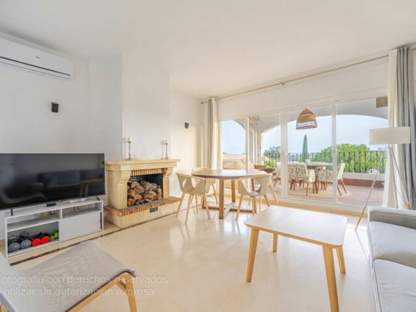We present this exclusive duplex property located in one of the most privileged areas of Marbella. The property has a total of 220 square meters built and also includes an additional 100 square meters of space, ideal for expanding the home according to your needs. On the upper floor, you will find the kitchen, a guest toilet, entrance hall, living-dining room, three bedrooms, and two full bathrooms. From the living room, access is granted to a large terrace with impressive panoramic views of the sea, countryside, and mountains.