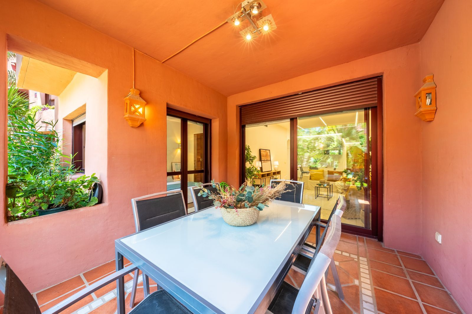 This renovated ground-floor apartment within the exclusive Alicate Playa development in Marbella offers a coastal living experience in one of the most sought-after areas of El Rosario.