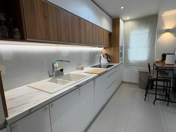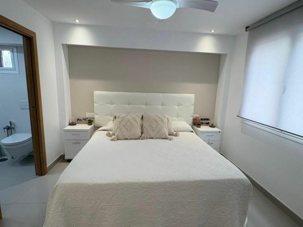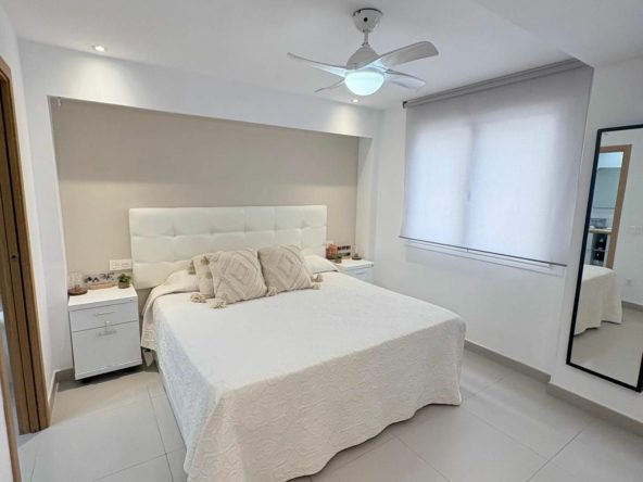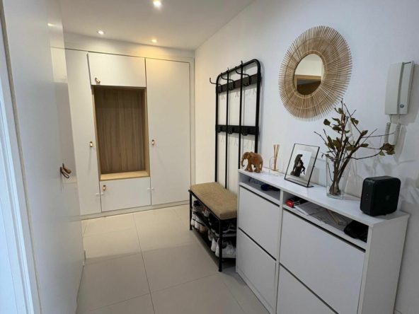 We present a welcoming, fully renovated apartment offering two bedrooms with built-in wardrobes and en-suite bathrooms, an open-plan kitchen/living room, and a terrace enclosed with folding security gates. The property is very comfortable, ready to move into, and is being sold partially furnished.
