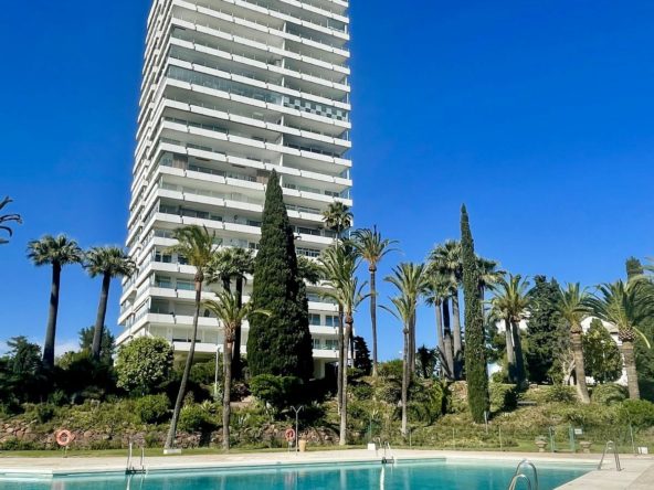 Unique opportunity to purchase two apartments which were united into one big apartment in the famous Torre Real in Marbella. Offering a total of 120m2 living and 98m2 terraces all around. Due to the location on one of the last floors of the building, you enjoy stunning views to the sea, views along the coast and to the mountains. The property comes with two private parking in the underground garage and a storage room. The gated community is also very special with large community grounds, gardens, pool areas and two tennis courts. The building offers a lift and a concierge service. About 10minutes from the historic part of Marbella town and only 45 minutes from the Málaga airport and city.
