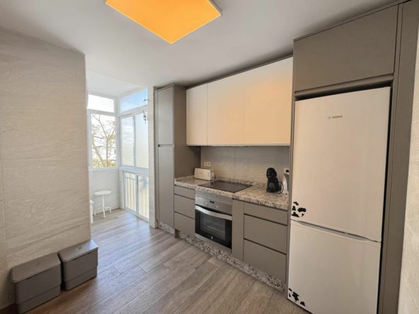 The kitchen is independent, fully equipped, and also includes a practical laundry area. The apartment has been renovated in a contemporary style, offering a modern and welcoming atmosphere.