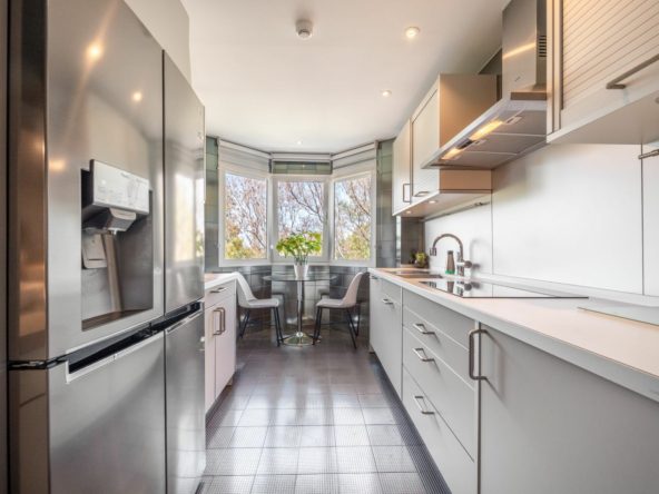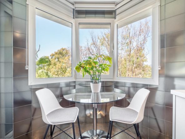 This exclusive 3-bedroom apartment is located in one of the most sought-after residential areas on the sea side, next to Puerto Banús. The apartment has three bedrooms, each with en suite bathrooms, a fully equipped kitchen and a spacious living and dining room. The spacious terrace surrounds the entire apartment and offers magnificent views of the well-maintained garden and the sea.