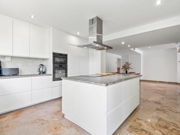Spacious ground floor apartment with 184 sqm. built and 70 sqm. terraces, in classic Mediterranean style, with both elegance and convenience. It is in a great location, close to the sea and beach. This makes it a good choice for people who like the coast. The apartment has three big bedrooms, two which are ensuite and a third bathroom cum guest toilet. All bathroom have undefloor heating.