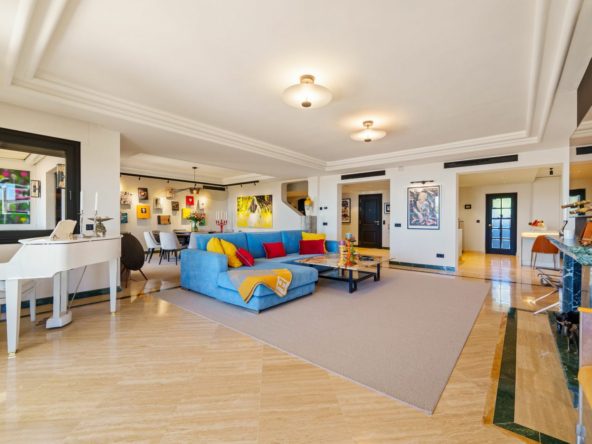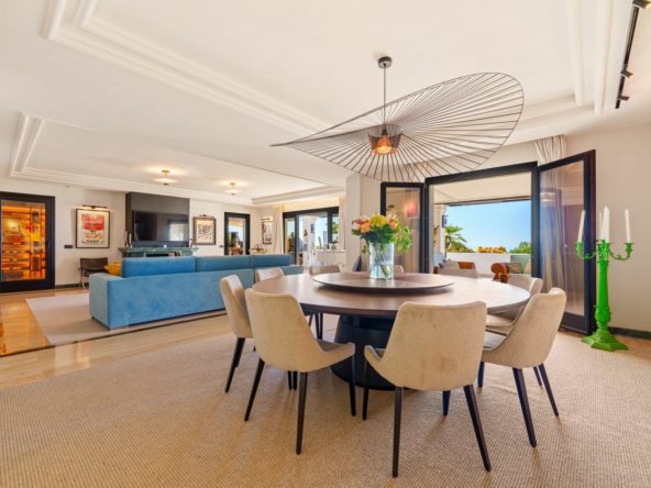 This stunning duplex penthouse is located in the prestigious Monte Paraiso Country Club, one of Marbella’s most exclusive gated communities on the Golden Mile. Combining elegance with modern design, the property offers expansive interiors filled with natural light, featuring spacious living and dining areas, a contemporary kitchen, and a private wine cellar. The refined décor and high-quality finishes create a perfect balance of comfort and sophistication.