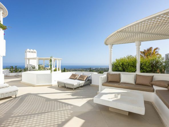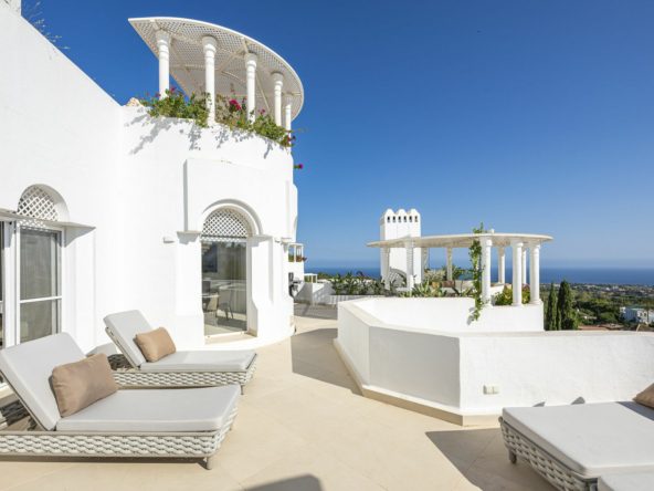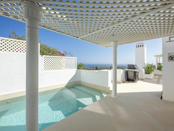 The location is particularly advantageous, being mountainside yet close to town, renowned schools, and a diverse selection of restaurants. Residents enjoy easy access to local amenities and transport links, making this apartment an ideal choice for those seeking a luxurious lifestyle in Marbella’s iconic Golden Mile. With breathtaking sea, mountain, and pool views from the covered and private terraces, this property epitomises refined coastal living.