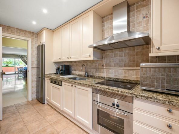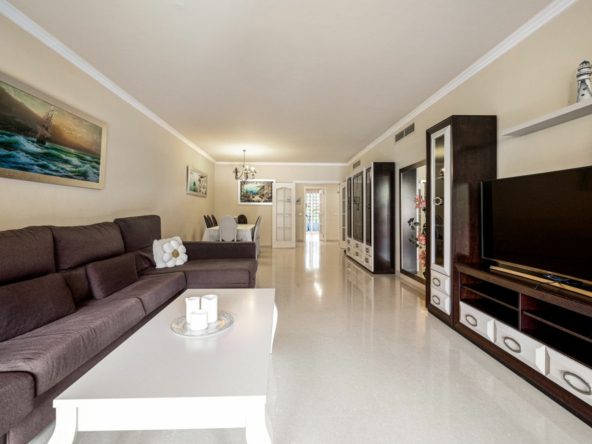 This is a stunning elevated ground floor apartment with 2 bedrooms and 2 bathrooms in a gated community in Puerto Banús. It includes a private parking space, a communal pool and gardens, and is fully furnished. The apartment is within walking distance to the beach and all local amenities, making it ideal for easy coastal living.
