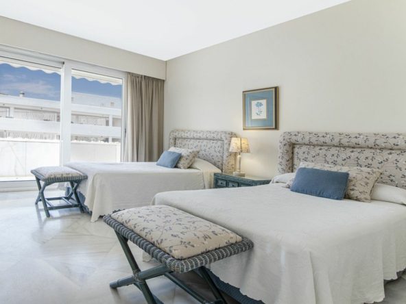 Magnificent front line beach duplex penthouse apartment, situated within walking distance of Puerto Banús and its beautiful Marina. The property enjoys fabulous views over the landscaped gardens the Mediterraneas Sea and La Concha mountain. Located in one of the best communities around Puerto Banús offering 24 hours gated security, indoor heated swimming pool, outdoor pool, restaurant and social club. The apartment offers an entrance hall, 4 bedrooms, 4 bathrooms en suite, elegant and spacious drawing room with dining area leading out to a large terrace with stunning lateral sea and gardens views. The upper floor enjoys a huge solarium with seating area, bathroom, kitchen and private swimming pool. Further the property includes one parking space in the underground garage. This property represents a great opportunity to purchase an ideal holliday or permanent residence.