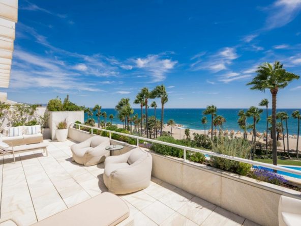 In the heart of Puerto Banús, within the prestigious residential complex Los Granados, stands this spectacular duplex penthouse, an exceptional property that redefines seafront luxury.