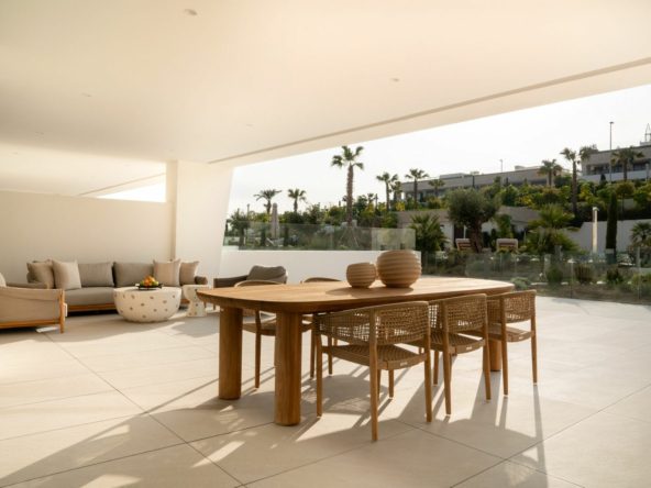 Designed for ultimate comfort, the duplex boasts a fully fitted kitchen with high-end appliances, underfloor heating throughout, and air conditioning. The private and covered terraces offer stunning garden and pool views, while additional luxuries include a jacuzzi, gym, spa, games room, and tennis/paddle courts. The basement provides extra space for customization, ensuring every need is met.