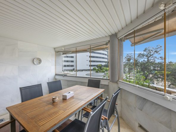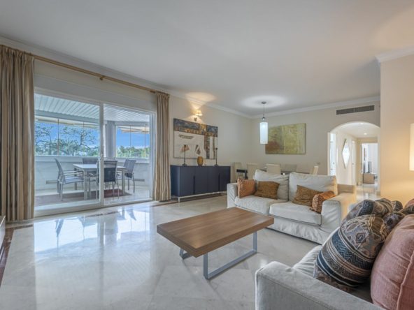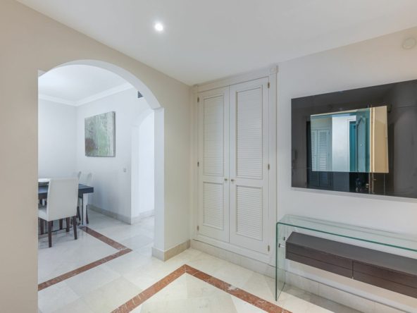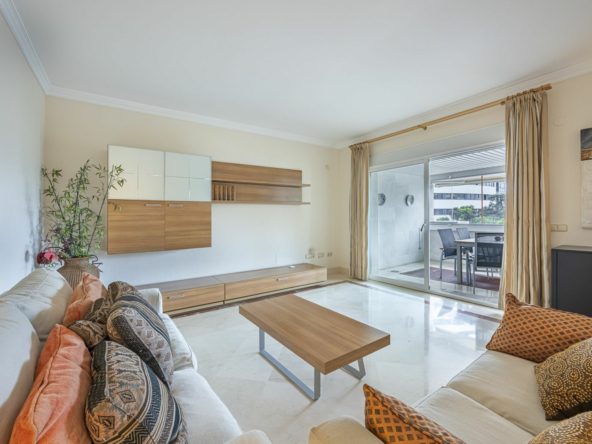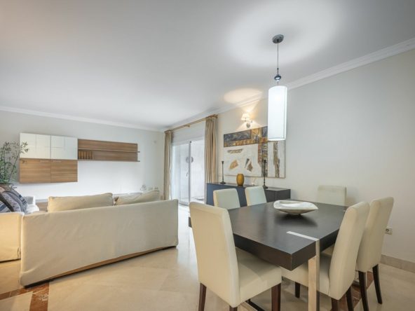 Located in Marbella’s prestigious Golden Mile, this elegant apartment offers a rare combination of prime location, comfort, and Mediterranean lifestyle. Set within the sought-after Jardín del Mediterráneo community, it is just a short stroll from the beachfront promenade and within walking distance of Marbella’s charming Old Town. Here, the শান্ত and privacy of a gated residential setting blend seamlessly with the vibrant social and culinary scene of beachfront restaurants, cafés, and chiringuitos.