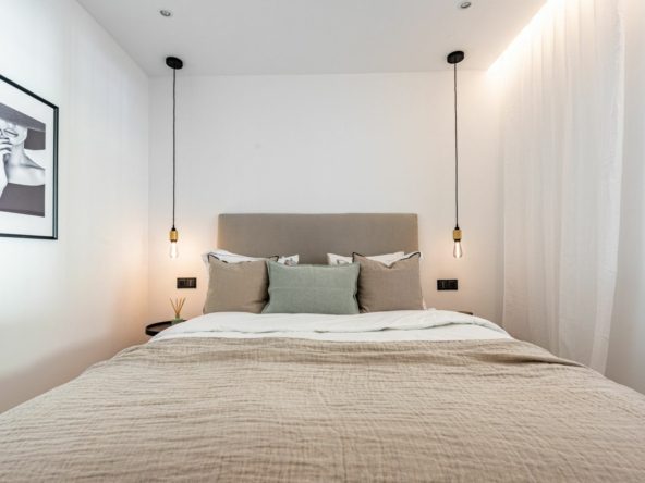 Inside, the apartment features three well-proportioned bedrooms and two modern bathrooms. The bright and airy living area connects seamlessly to the terrace, enhancing the indoor-outdoor lifestyle. The master suite benefits from its own private bathroom and direct terrace access, adding a sense of privacy and calm.
